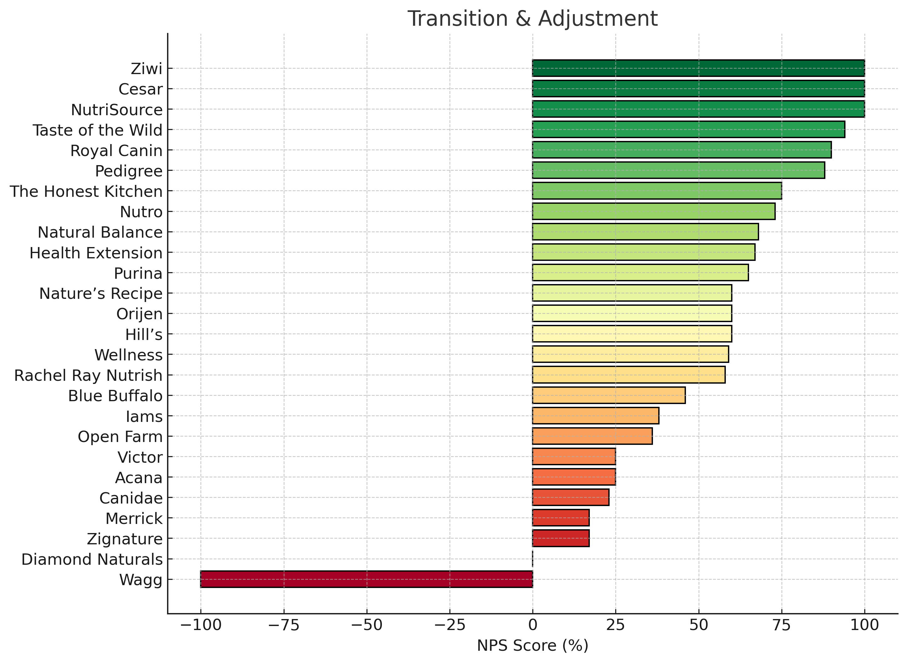 Our latest research, powered by Reviews.AI, analyzes thousands of customer reviews to uncover what makes or breaks the Transition & Adjustment experience in dry dog food. The insights are clear: