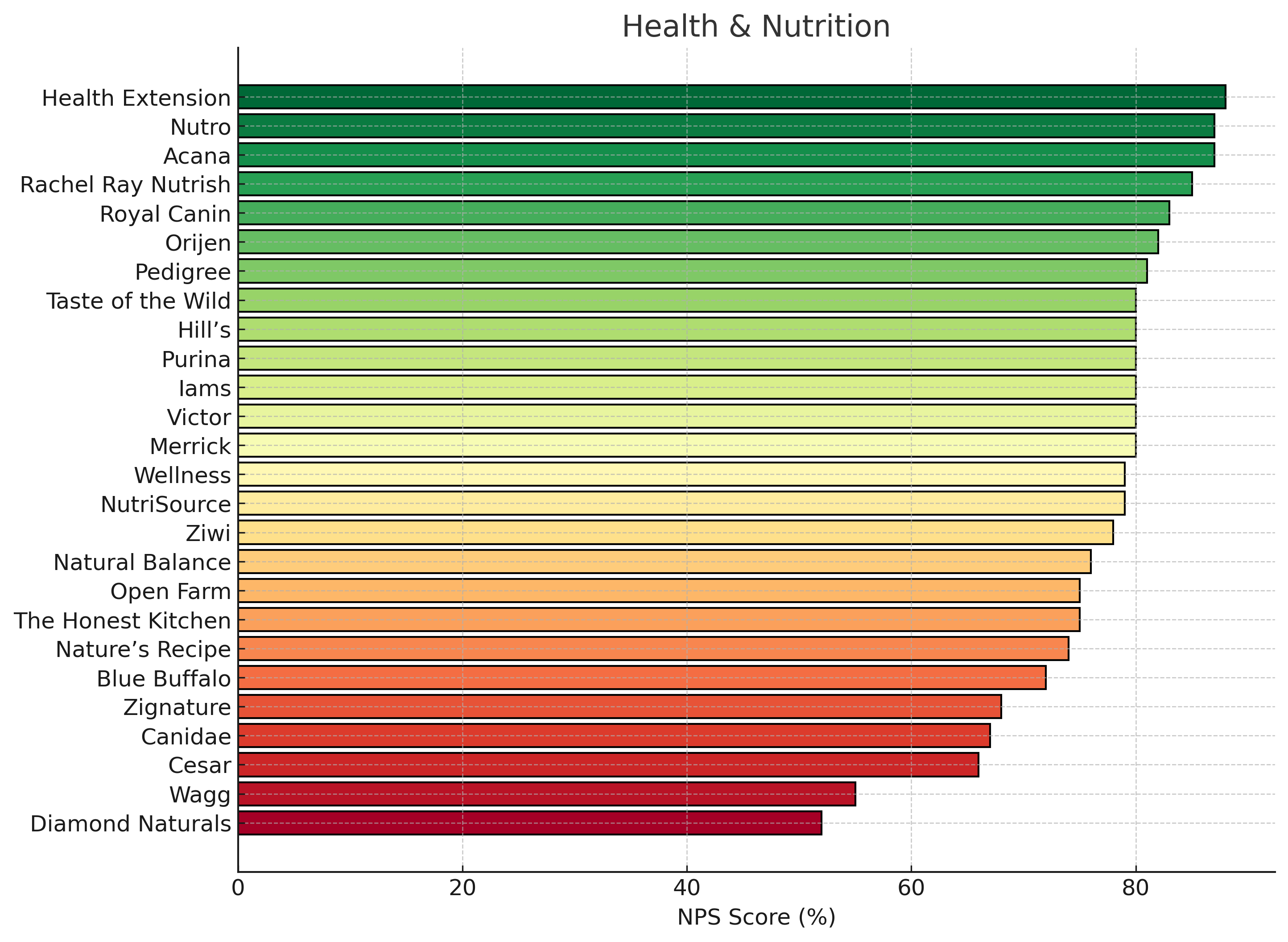 ✅ Top-performing brands like Health Extension, Acana, Nutro, Rachel Ray Nutrish, Pedigree, Royal Canin, and Wellness earn customer loyalty with their high-quality ingredients, visible health benefits, and tailored formulations for specific breeds and life stages.